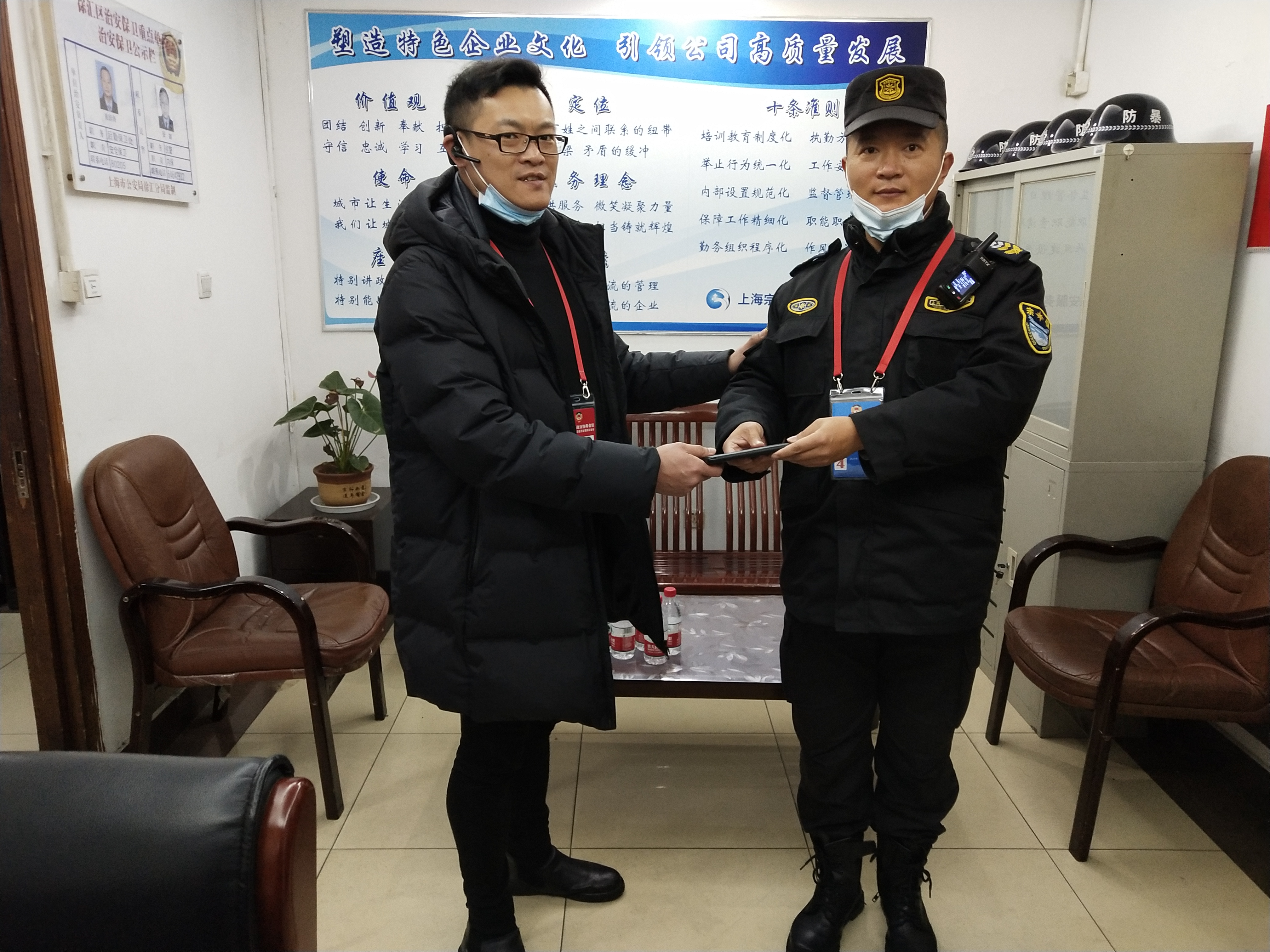 1月31日,宗保公司駐陸家嘴綜合管理項目隊員漆貴成撿到手機歸還失主,受到好評。