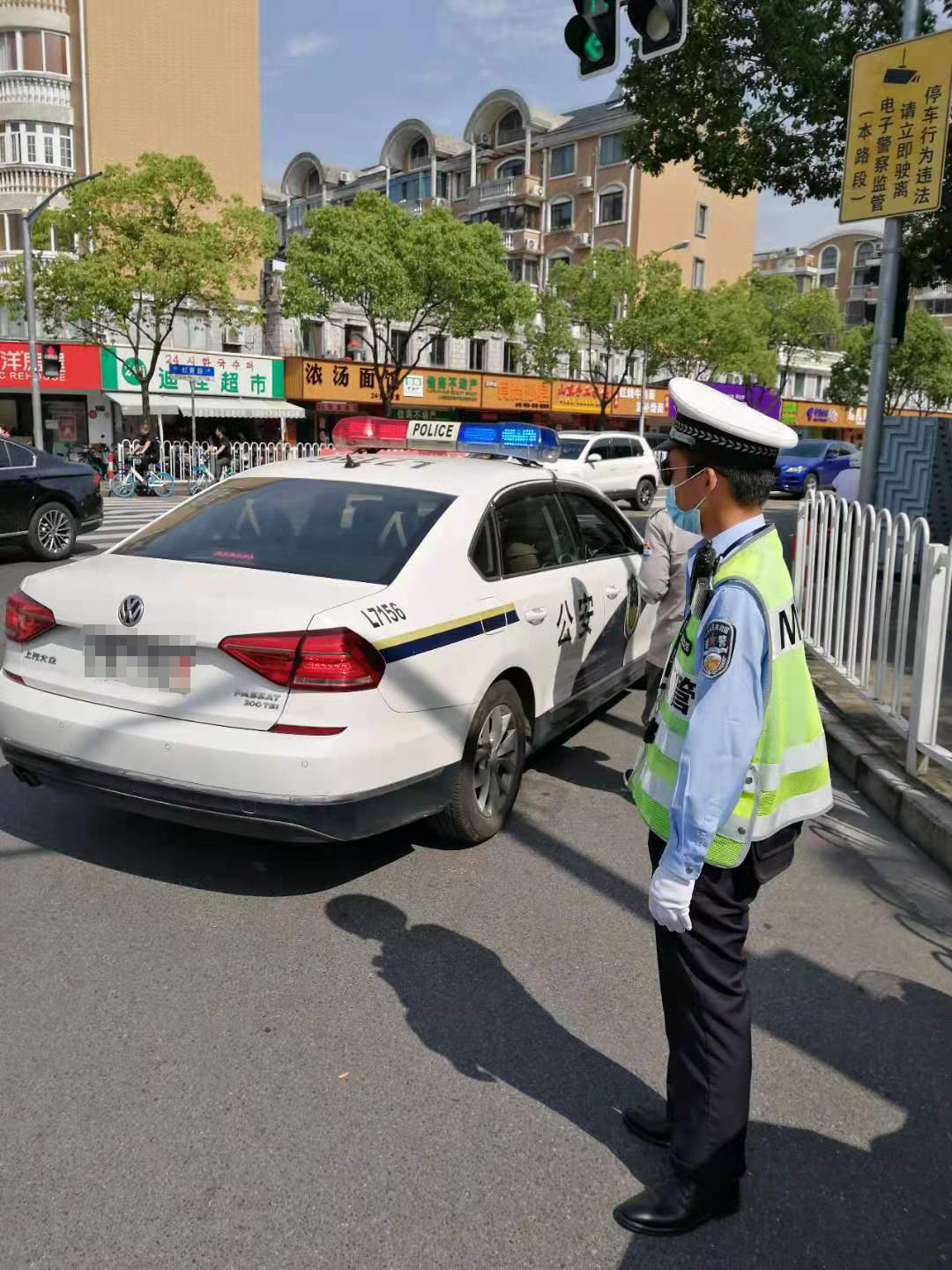 小女孩到學(xué)校后,發(fā)現學(xué)校當天不上課,就趕緊跑出來(lái)找媽媽?zhuān)珛寢屢呀?jīng)開(kāi)車(chē)走了。于是,小女孩便找到在崗位上值勤的余志凱。