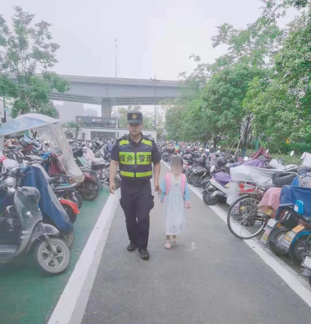 余志凱將情況上報項目隊長(cháng)付牛,付牛隨即報警并向所屬城管中隊報告。隨后,余志凱按指示帶小女孩前往學(xué)校,找到學(xué)校校長(cháng)說(shuō)明情況,校長(cháng)及時(shí)聯(lián)系小女孩家長(cháng),由校長(cháng)幫助將小女孩帶回。