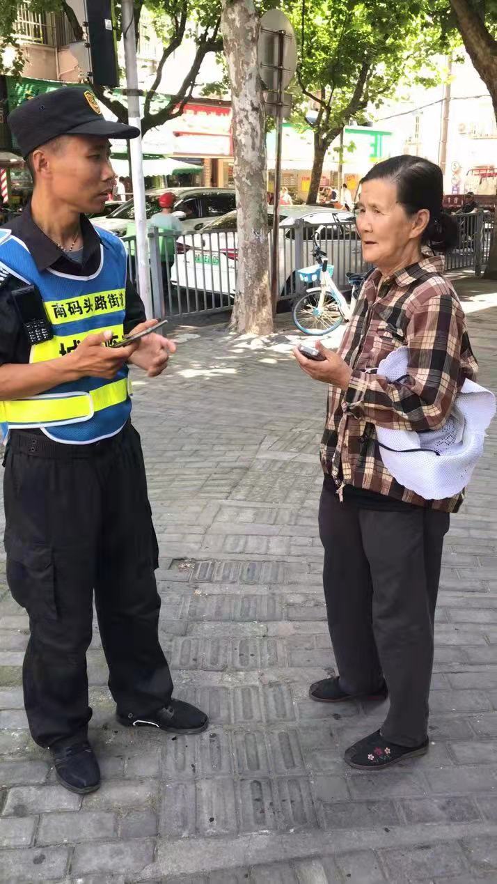 當天,徐寶輝、劉昆在東三里橋路南碼頭路口值勤時(shí),看到一位老奶奶神色慌張,急匆匆地趕路,便上前詢(xún)問(wèn)。原來(lái)老人家住在臨沂三村,進(jìn)商場(chǎng)買(mǎi)點(diǎn)東西,結果從商場(chǎng)里出來(lái)就找不到回家的路了,手機也壞了,一時(shí)無(wú)法聯(lián)系到家人。