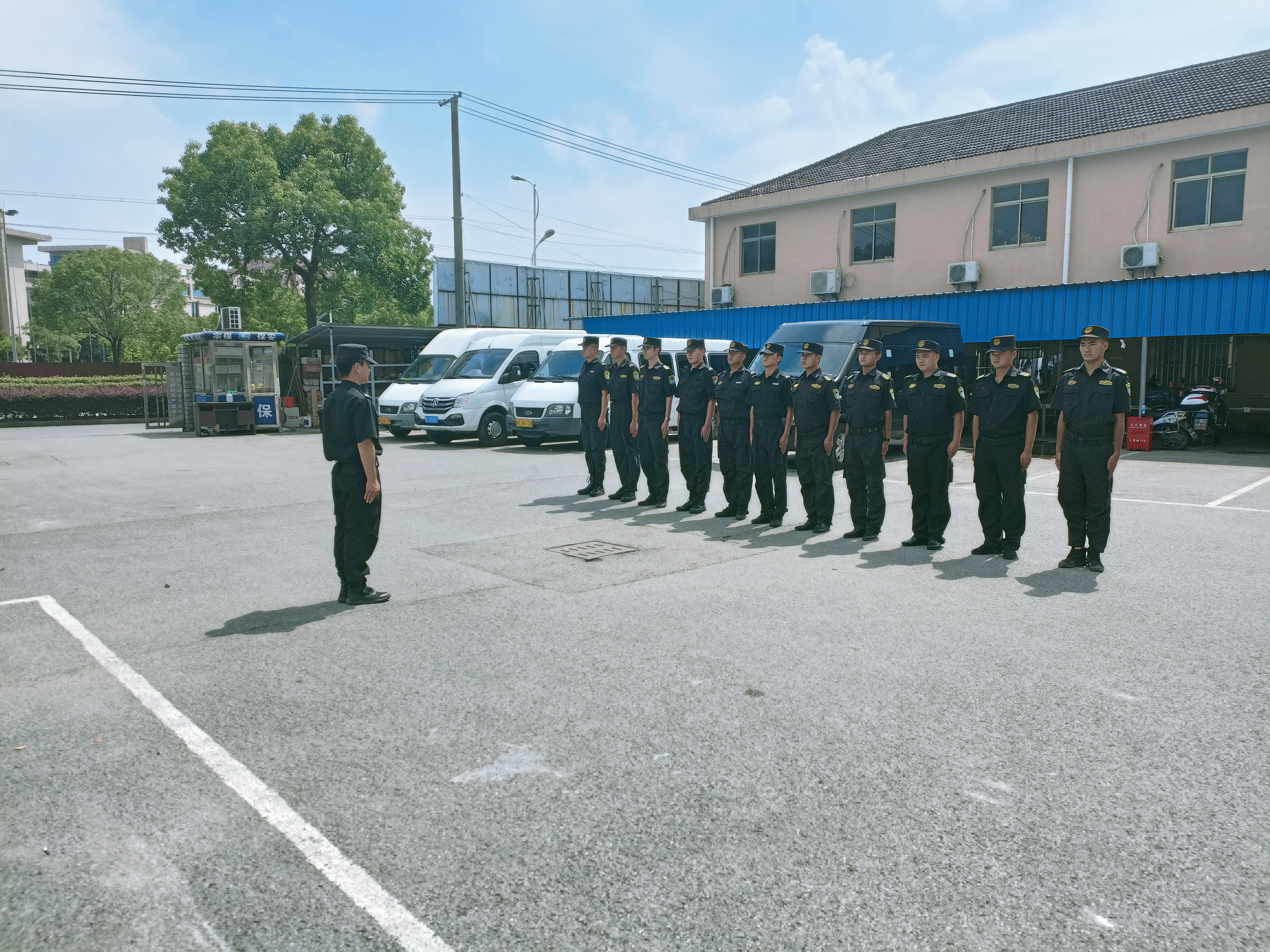 為培養公司隊員嚴整的容姿,根據公司打造一支素質(zhì)好、作風(fēng)硬、紀律嚴保安隊伍的要求,各區域將小教員組織起來(lái)組建教導隊,集中進(jìn)行齊步跑步、整理著(zhù)裝、立正稍息、跨立、敬禮、文明用語(yǔ)、崗位職責等內容的培訓,提高小教員的組訓能力。培訓中,全體參訓人員不怕辛苦、不顧炎熱,以整齊的著(zhù)裝、認真的態(tài)度、飽滿(mǎn)的精神投入到訓練之中,充分展現了宗保隊員良好的精神風(fēng)貌。
