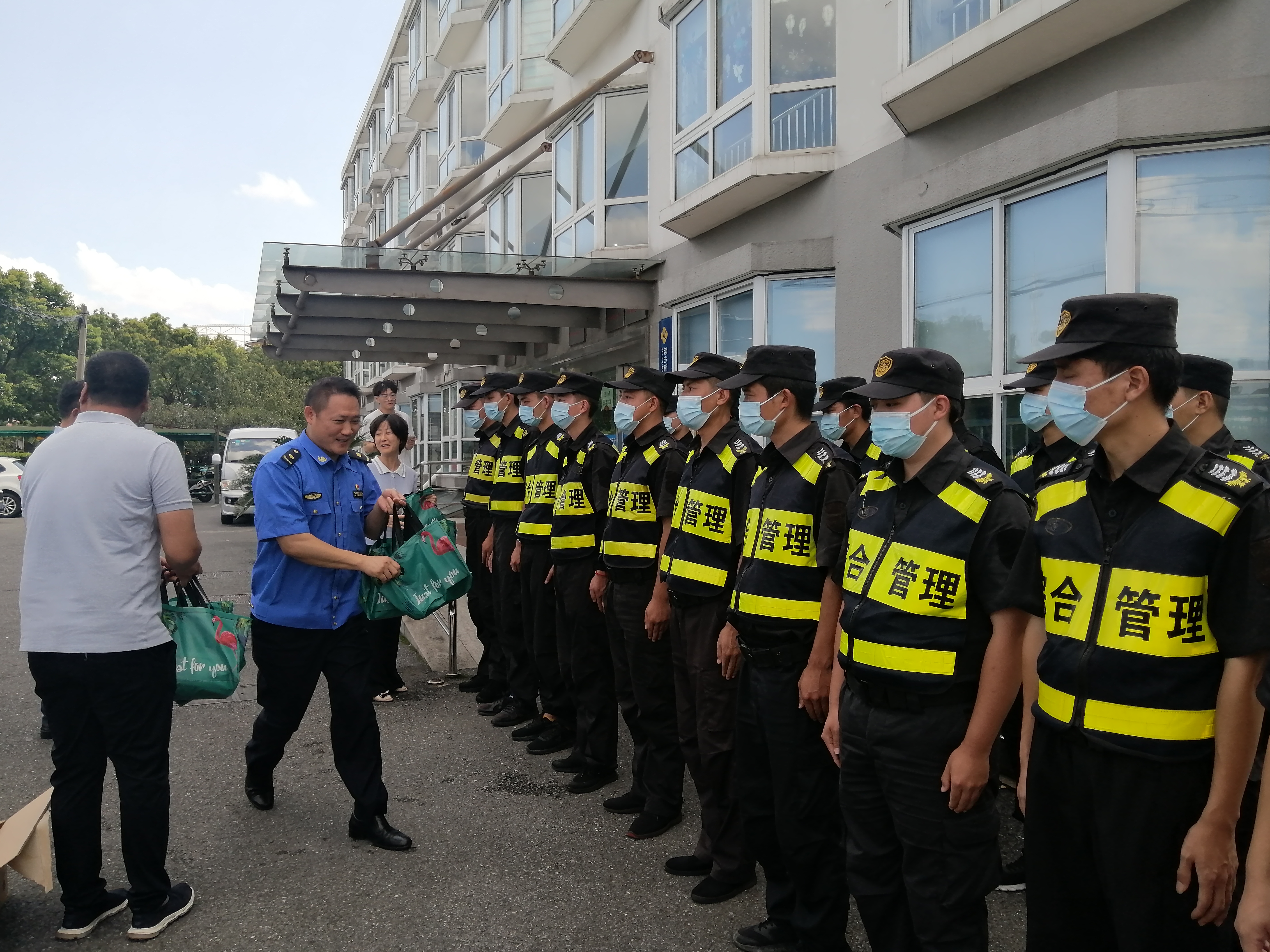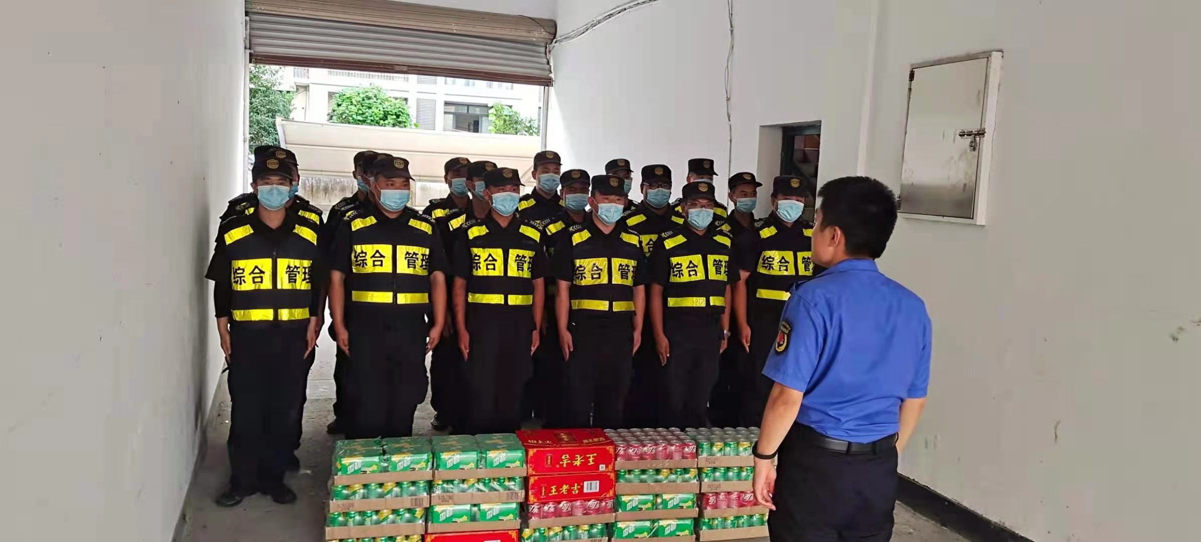 王哲副隊長(cháng)給隊員們送上了飲料等防暑降溫用品,感謝大家為輔助城市管理和維護城區秩序所作的貢獻,叮囑隊員們要落實(shí)好疫情防控措施,確保防護安全。同時(shí),提醒大家高溫天氣下,一定要做好防暑降溫工作,注意勞逸結合,確保身體健康。