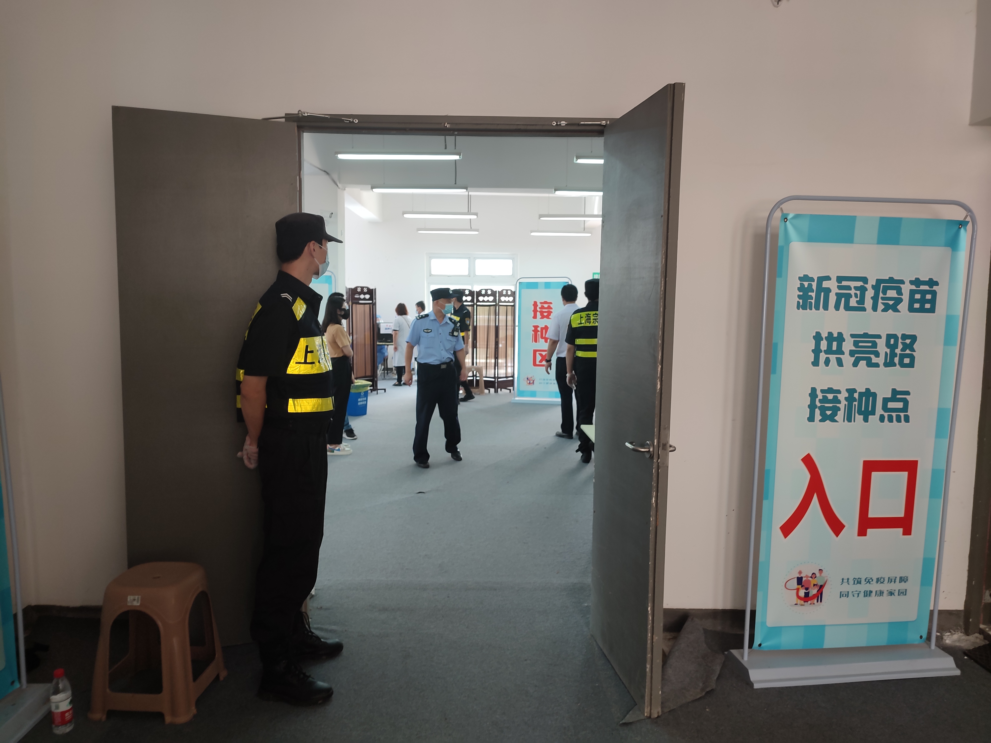 近期,惠南區域開(kāi)展第三針新冠疫苗接種工作,宗保公司承接拱亮路疫苗接種點(diǎn)安保秩序維護工作任務(wù)。