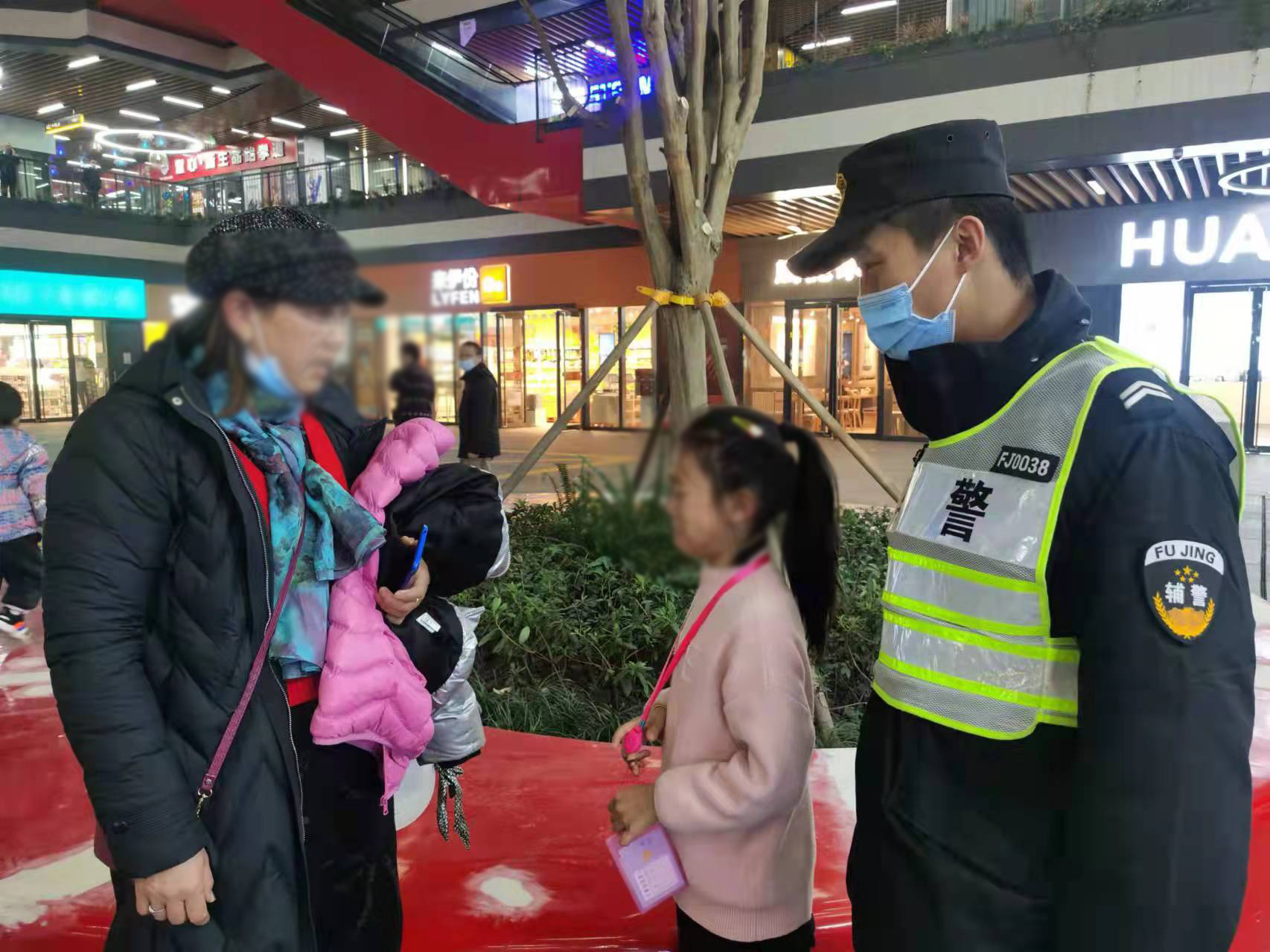 當日20:50,宋其波在新環(huán)廣場(chǎng)值勤時(shí),看到一個(gè)小女孩,身邊沒(méi)有大人陪同,獨自一個(gè)人在廣場(chǎng)上一邊走一邊哭。