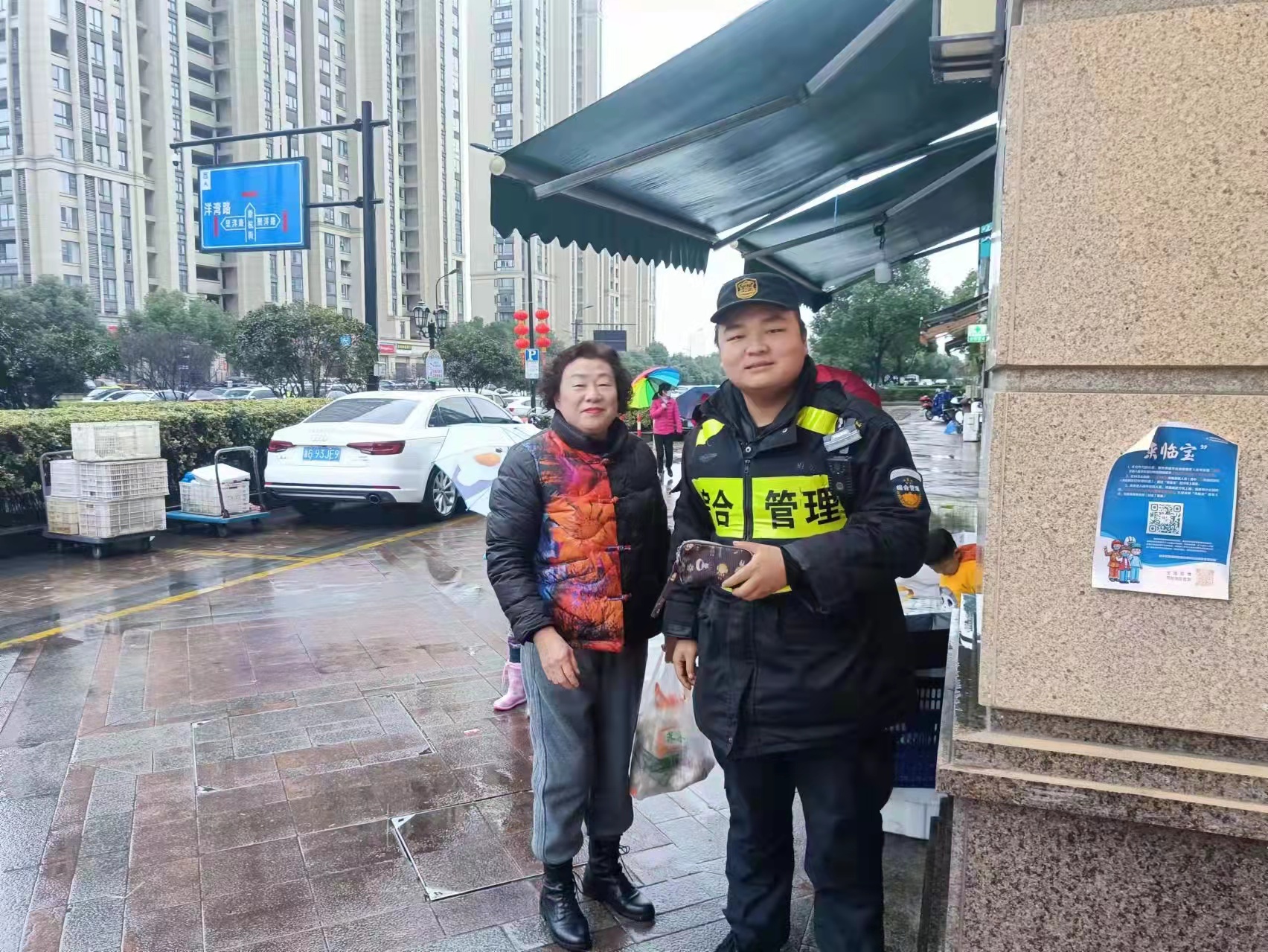 當日15:20,秦錄宇在崇杭街1826號天鮮配生鮮超市門(mén)口巡邏時(shí),撿到一個(gè)錢(qián)包,包內有現金和一串鑰匙,因沒(méi)有失主的聯(lián)系方式,便將情況上報了項目隊長(cháng),并按指示在原地等待。