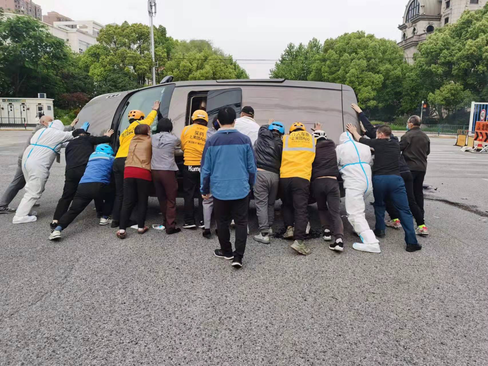 5月1日,宗保公司駐陸家嘴嶗山項目隊員路遇一起車(chē)輛側翻事故,協(xié)力將被困駕駛員救出。