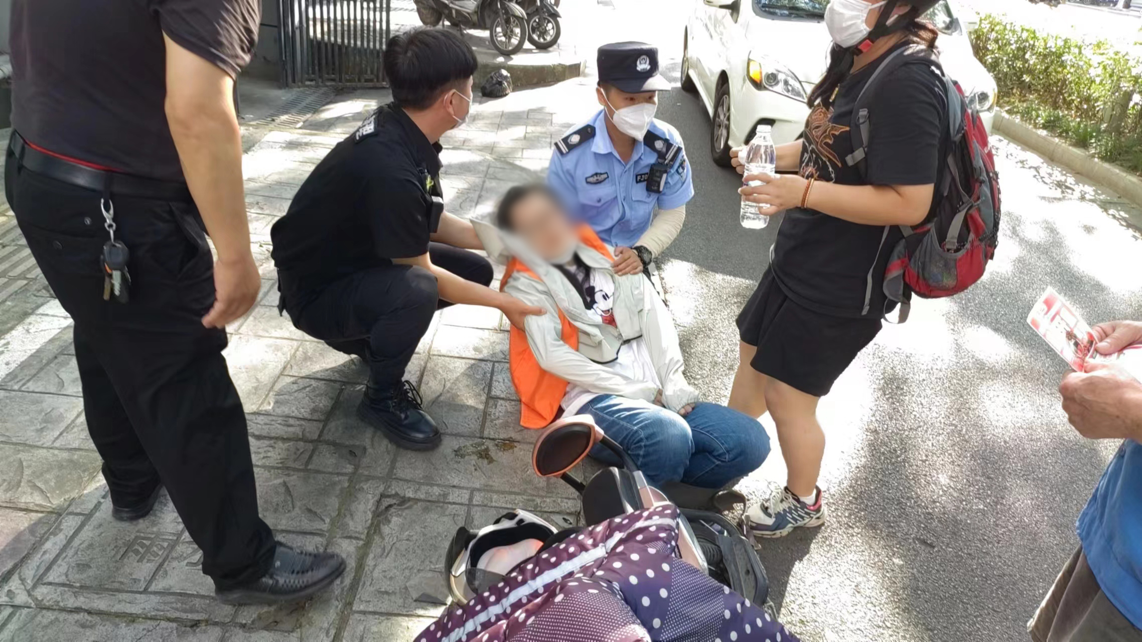 7月12日8:30,公司駐崇明區建設鎮項目員工韓永坤在建設鎮文化活動(dòng)中心核酸采樣點(diǎn)保障時(shí),發(fā)現一位身穿藍色環(huán)衛衣的老人癱坐在地,臉色蒼白,衣服濕透,疑似中暑。韓永坤攙扶老人,遞服仁丹和礦泉水,并聯(lián)系其家人送往醫院治療。