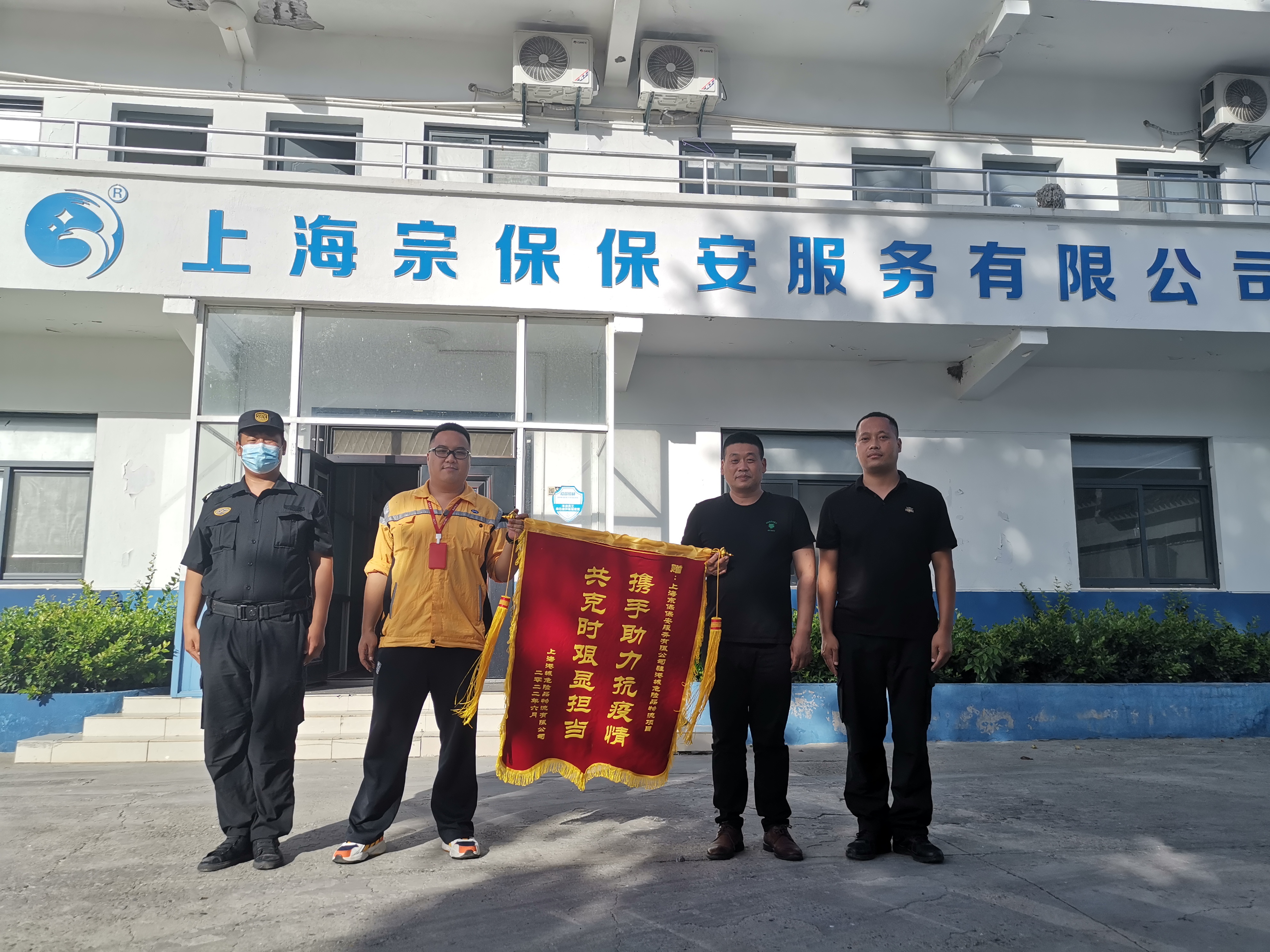 7月5日,浦東三林城管中隊送來(lái)一面繡有“防控疫情忠職守 點(diǎn)滴服務(wù)暖人心”的錦旗和一封感謝信,充分肯定宗保公司員工在疫情防控期間所做的工作,衷心感謝公司員工的辛勤付出。