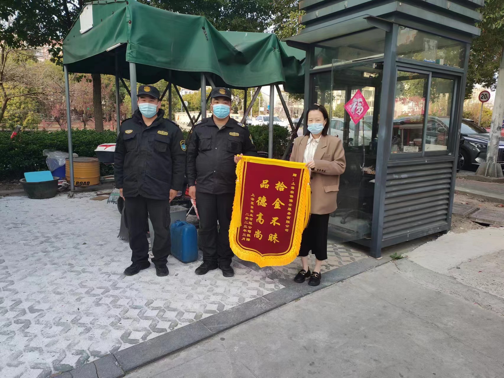 3月16日,宗保公司駐周浦區域海印·哈鄰里項目員工關(guān)毅亮收到市民送來(lái)的一面繡有“拾金不昧 品德高尚”的錦旗,感謝他拾金不昧、想法交還的行為。