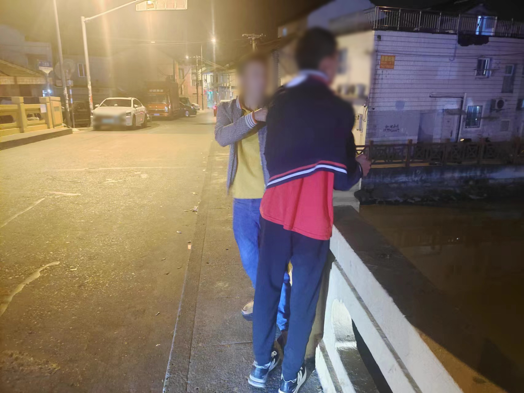 當日23:15,公司員工孫魁在三灶路與橫沔江路橋頭巡邏時(shí),聽(tīng)到有人在橋頭大聲呼叫“快來(lái)救救我家小孩,救救我家小孩,他要跳河,他要跳河......”
