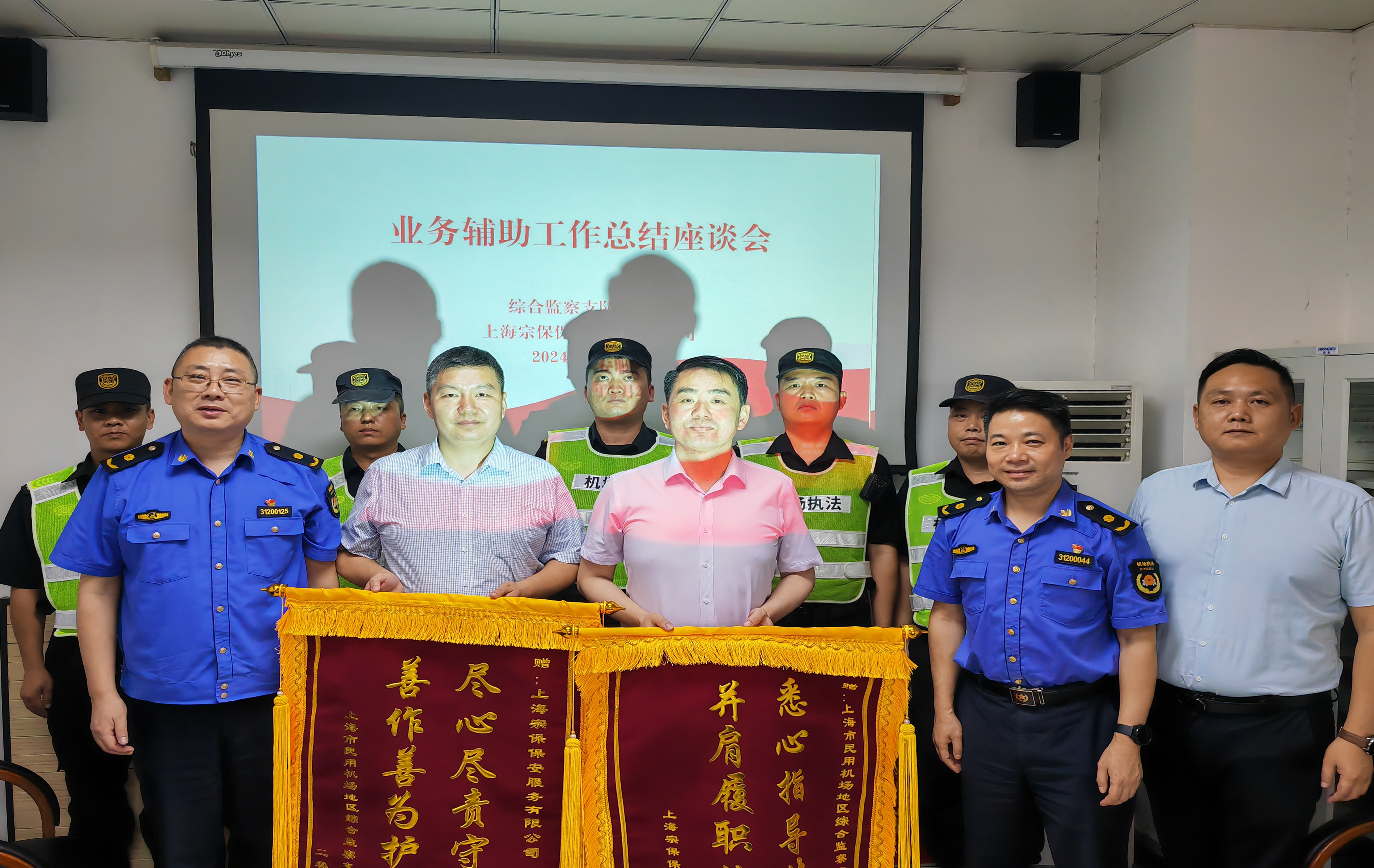 7月24日,宗保公司駐上海市民用機場(chǎng)地區綜合監察支隊二大隊項目收到甲方贈送的繡有“盡心盡責守空港 善作善為護平安”的錦旗,感謝公司為助力維護浦東機場(chǎng)航站樓治安環(huán)境作出的積極貢獻。