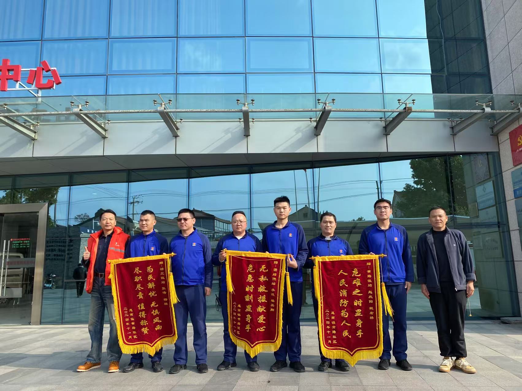 浦東新區惠南鎮黃路微站獲贈繡有“危難之時(shí)顯身手 人民消防為人民”的錦旗
