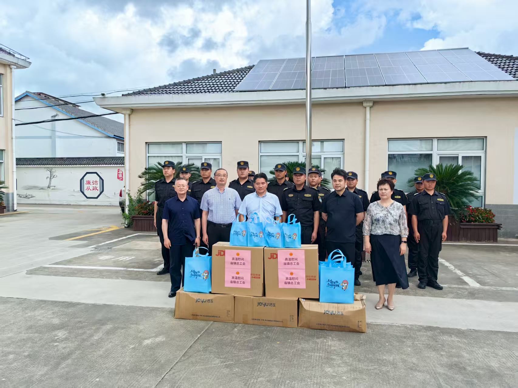 上海宗保保安服務(wù)有限公司是一家由退役軍人創(chuàng )辦的企業(yè)。公司秉持“規范經(jīng)營(yíng) 誠信為本 服務(wù)至上”的發(fā)展理念,抓管理促規范,抓隊伍強素質(zhì),抓服務(wù)增信譽(yù),公司員工綜合素質(zhì)過(guò)硬,甘于吃苦、能打硬仗。連日來(lái),他們頂著(zhù)烈日,冒著(zhù)酷暑,堅守在崗位第一線(xiàn),助力完成了甲方賦予的各項工作任務(wù)。他們的敬業(yè)精神贏(yíng)得了甲方的表?yè)P點(diǎn)贊,他們的工作表現得到了甲方的充分肯定,近日甲方領(lǐng)導看望慰問(wèn)公司員工,致敬他們的敬業(yè)奉獻,感謝他們的辛勞付出。