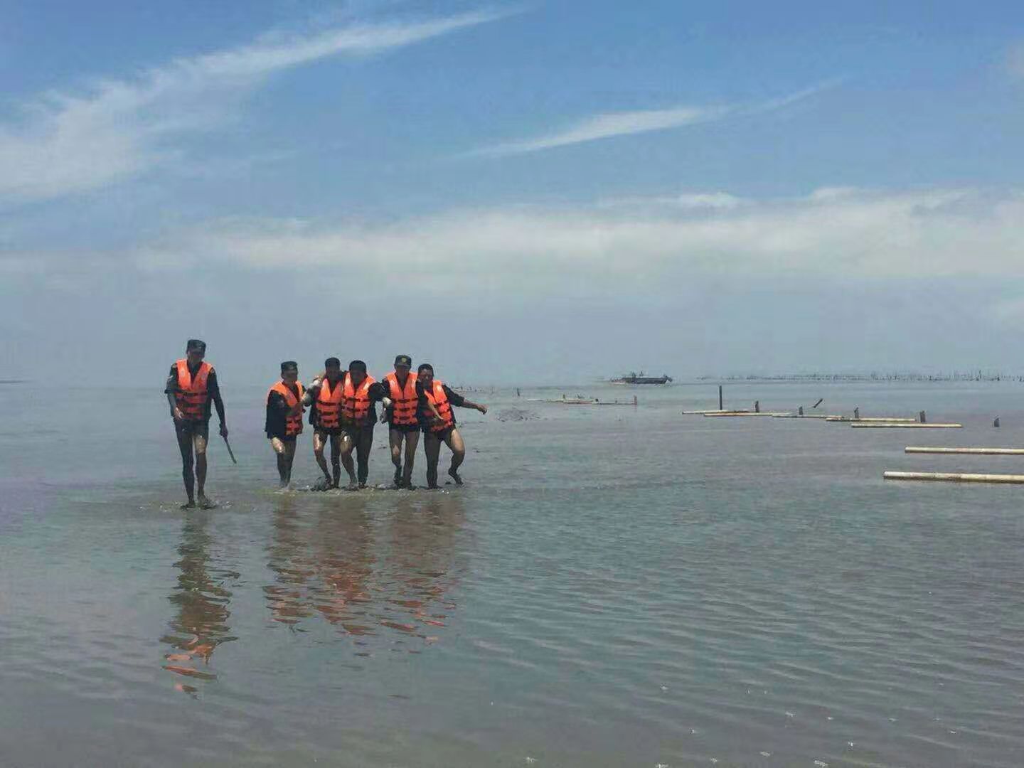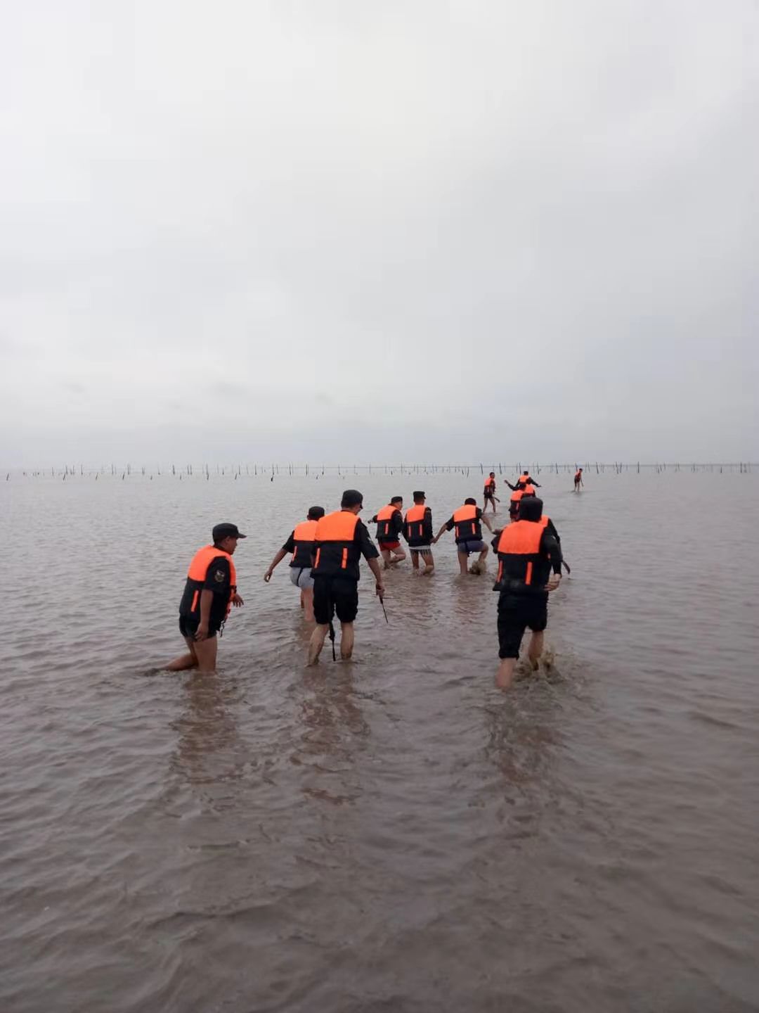 一是潮水。灘涂作業(yè),影響最大的就是潮汐。漲潮、退潮快。平靜的海水蘊含著(zhù)重重危機,漲退潮水流極快,隊員不提前準備,根本跑不及潮水。大潮時(shí)間短。灘涂作業(yè)潮水退不盡,無(wú)法作業(yè),必須利用大潮期潮水完全退去的空檔實(shí)施。