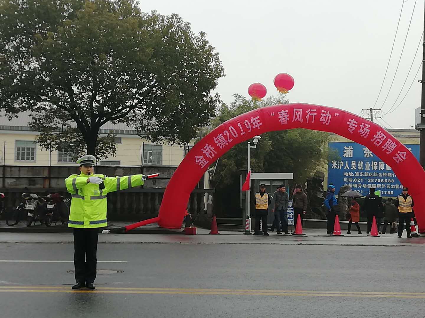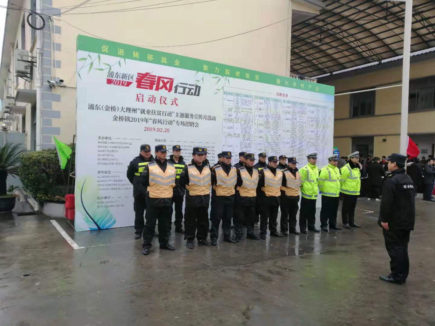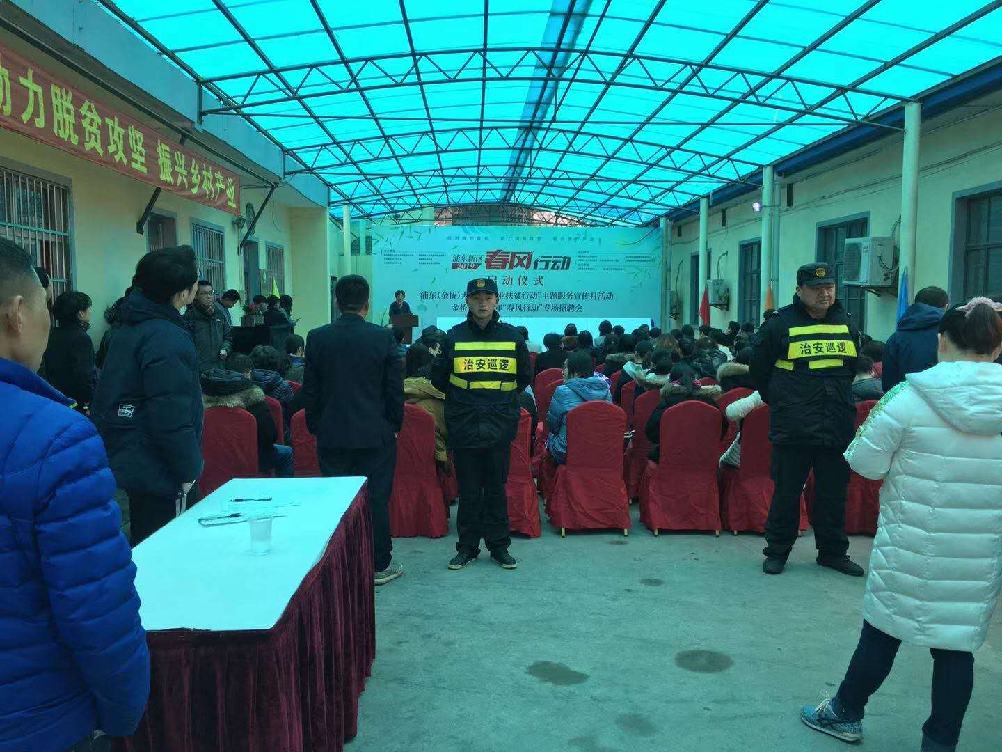 當日08:30,金橋鎮2019年第一場(chǎng)“春風(fēng)行動(dòng)”專(zhuān)場(chǎng)招聘會(huì )在新金橋路1745號正式啟動(dòng)。浦東新區管小軍副區長(cháng)在金橋鎮書(shū)記和鎮長(cháng)的陪同下,到招聘會(huì )現場(chǎng)調研。宗保公司負責招聘會(huì )現場(chǎng)秩序維護和周邊道路交通指揮工作。