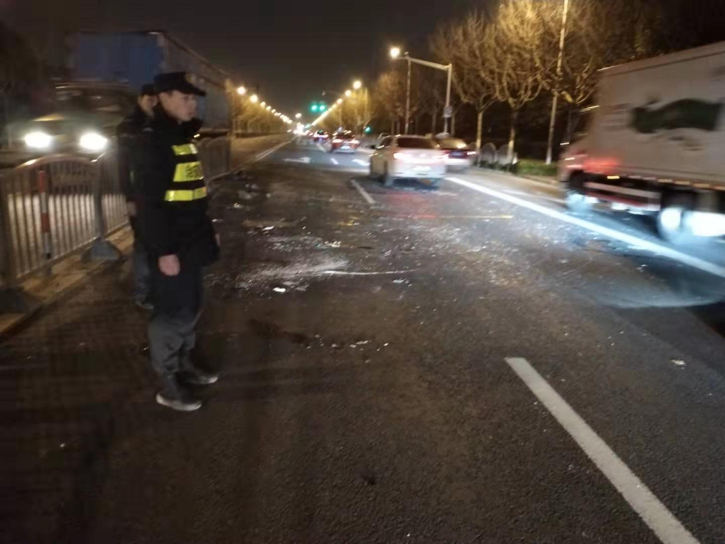 小張和小高立即向所里匯報情況。由于事故發(fā)生在路中間,為防止發(fā)生二次事故,張祿祿幫忙駕駛員從車(chē)窗里爬出,高景負責疏導來(lái)往車(chē)輛,指揮車(chē)輛繞行。