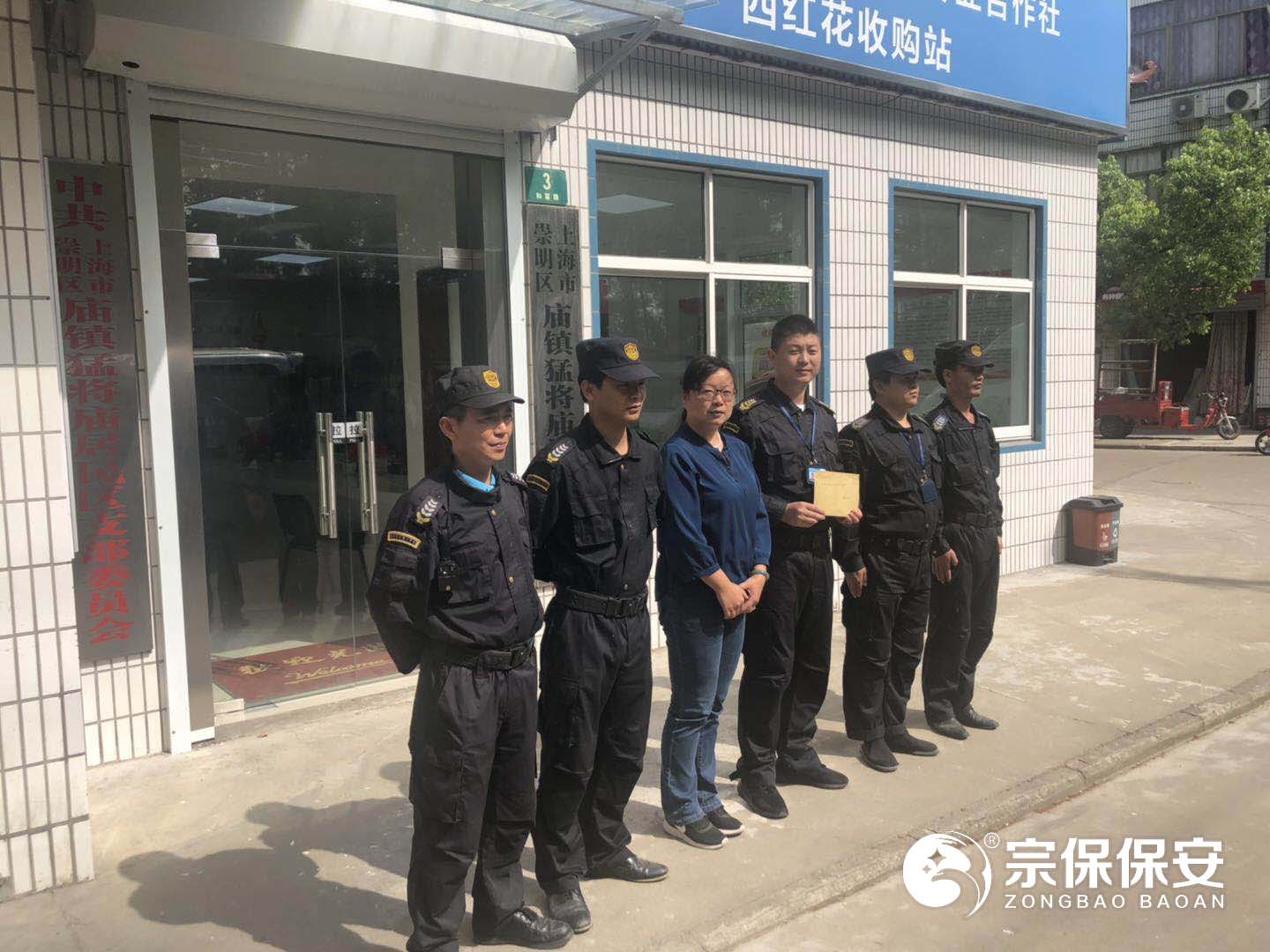 2019年5月20日,崇明廟鎮合作居委會(huì )陳書(shū)記將一封表?yè)P信送到宗保保安駐崇明廟鎮項目,以表示對宗保公司工作的認可及感謝。