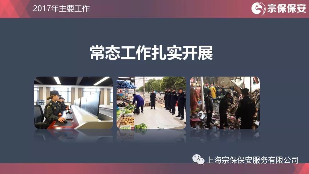 不忘初心,牢記使命。2017年,全公司配合城管勸導流動(dòng)攤販637836起,勸阻跨門(mén)經(jīng)營(yíng)約528907起,引導、擺放車(chē)輛1639497輛;配合民警盤(pán)查人員285684人、盤(pán)查非機動(dòng)車(chē)372658次、盤(pán)查機動(dòng)車(chē)67344次、登記人口70多萬(wàn);配合交警清查非法營(yíng)運車(chē)輛6730輛、交通疏導496941人次。天量數據的背后,是宗保人對自己承諾的嚴格落實(shí),對甲方單位的認真負責,對業(yè)務(wù)工作的一絲不茍。