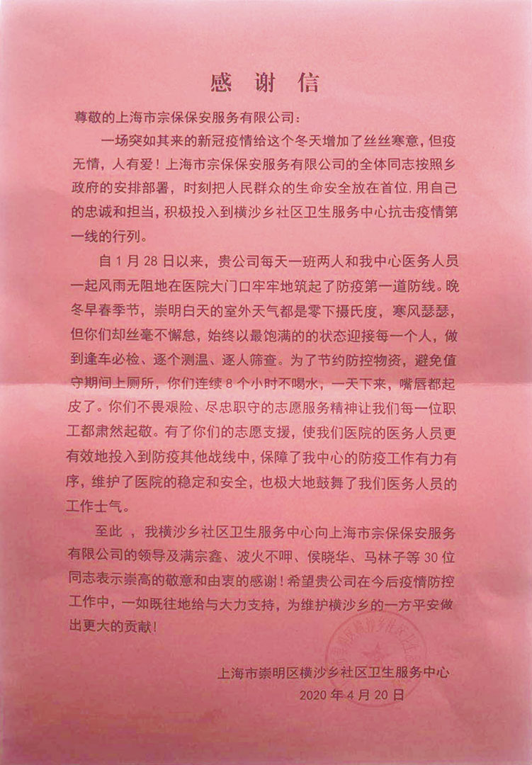 面對突如其來(lái)的疫情,上海宗保保安服務(wù)有限公司全體員工聞令而動(dòng),認真貫徹落實(shí)各級疫情防控工作決策部署要求,戮力同心,共克時(shí)艱,全力以赴投入到疫情防控工作之中,展現了宗保人的責任與擔當。