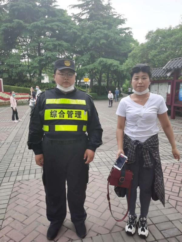 小陳和小鄭第一時(shí)間將情況上報帶班組長(cháng),并按照要求在原地等待失主。大約20分鐘后,一名女士十分焦急地走過(guò)來(lái),好像在找東西。陳阿麗和鄭世豪見(jiàn)狀上前詢(xún)問(wèn),經(jīng)核實(shí)身份確定是失主本人,便把挎包歸還。