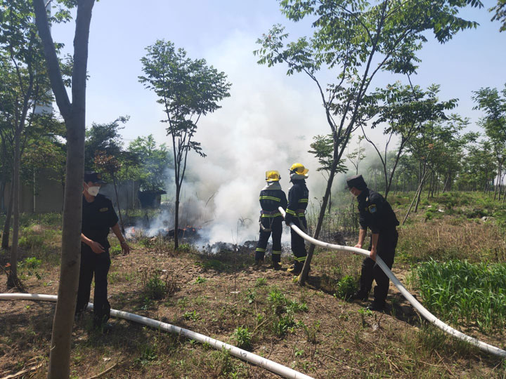 消防員趕到現場(chǎng)后,保安隊員全力協(xié)助進(jìn)行滅火。經(jīng)過(guò)半個(gè)多小時(shí)的撲救,火勢被徹底撲滅,避免了一場(chǎng)火災事故的發(fā)生。