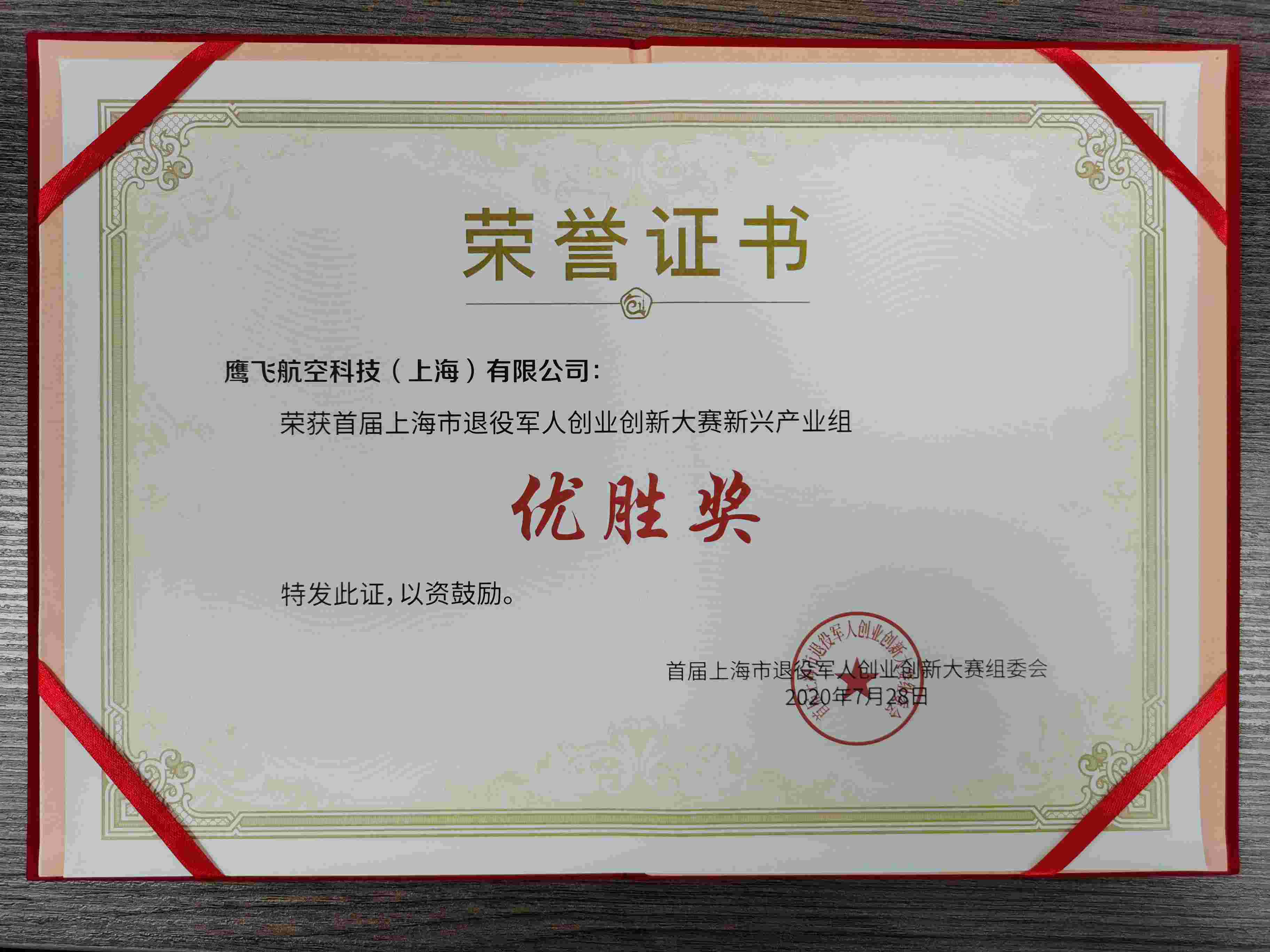 7月28日,首屆上海市退役軍人創(chuàng )業(yè)創(chuàng )新大賽頒獎典禮在浦東新區張江人工智能館舉辦。宗保公司旗下的鷹飛航空科技(上海)有限公司榮獲優(yōu)勝獎。
