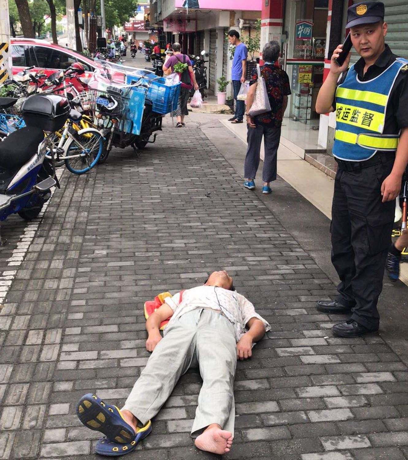 8月11日8點(diǎn)左右,小網(wǎng)格副組長(cháng)劉昆和隊員宋文松進(jìn)行網(wǎng)格巡查時(shí),發(fā)現一位老人躺在路邊人行道上。