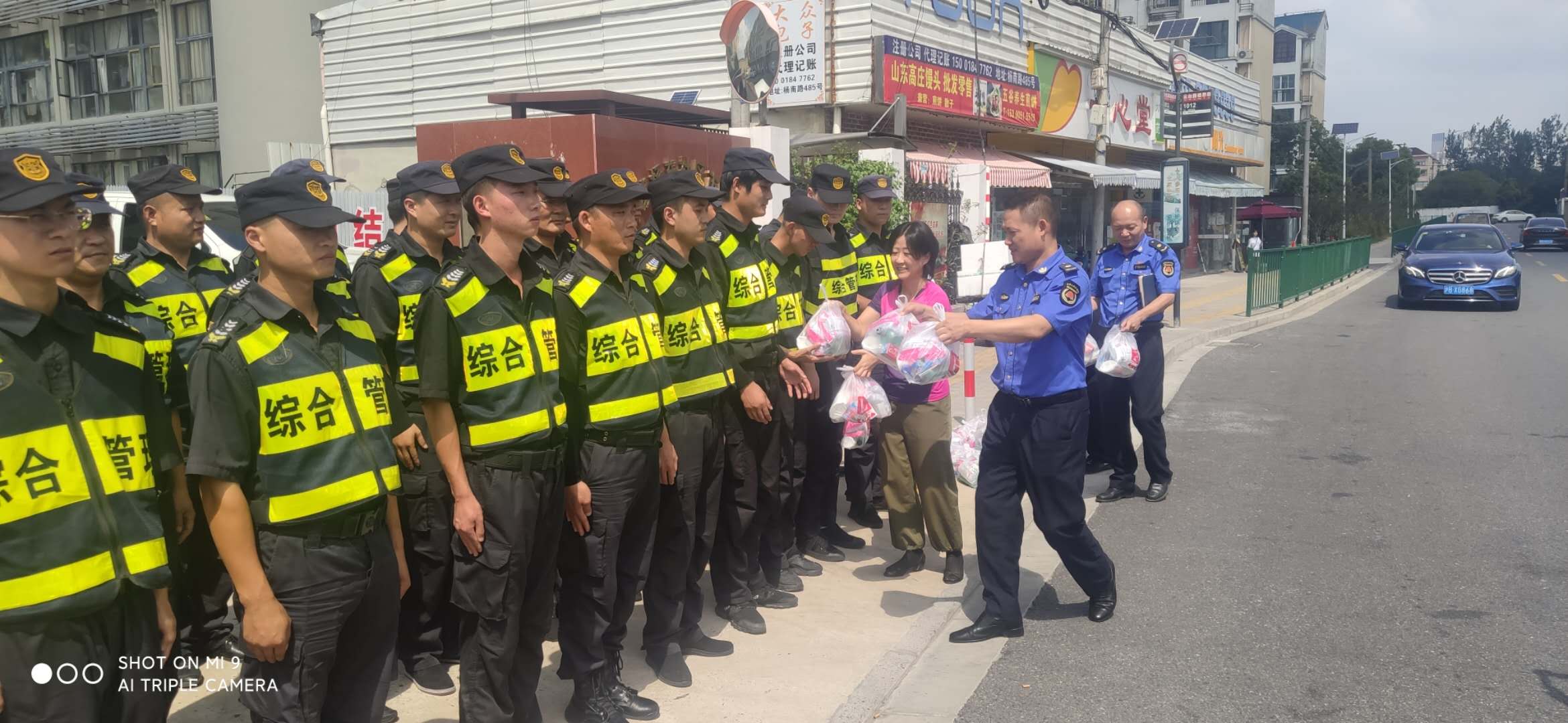 9月2日10:00,三林鎮城管中隊隊長(cháng)陳潔、副隊長(cháng)費濱和楊東社區書(shū)記黨艷、副書(shū)記趙霞等一行頂著(zhù)烈日,慰問(wèn)工作在一線(xiàn)崗位的宗保隊員,并為隊員們送上防暑降溫用品。 公司三林市容項目隊員以嚴謹細致的工作態(tài)度,認真負責的工作精神,不畏炎熱的工作熱情,得到了甲方的高度評價(jià),為公司贏(yíng)得了信譽(yù),樹(shù)立了良好的形象。 供稿人:馮四軍