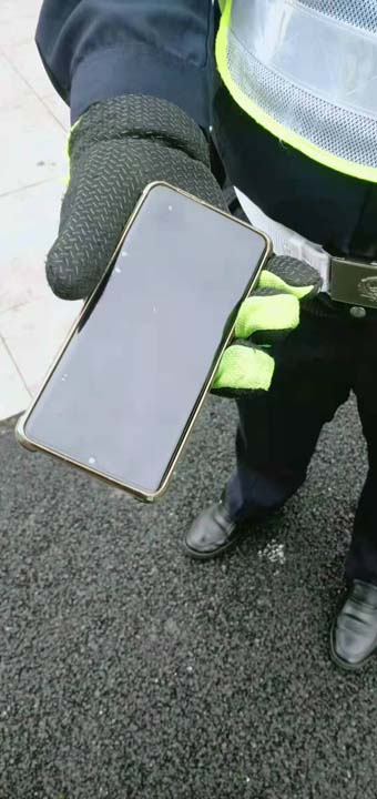 當日16:45左右,王中坦在滬閔路報春路口值勤時(shí)撿到一部手機,因手機設有開(kāi)機密碼,無(wú)法獲取失主的聯(lián)系方式,便在路口邊執勤,邊等待失主聯(lián)系。